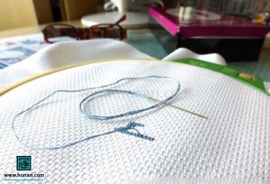 و آخرین نکته این است که در این طرح، با ۲ رشته نخ دمسه، شمارهدوزی را انجام دهید.