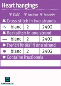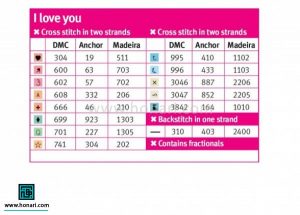 برای این کار بهتر است از پارچه کتان با سوراخهای مشخص استفاده کنید. هر عدد در نمودار، نشاندهنده رنگ خاصی از نخ است. شما باید مطابق راهنمای رنگ، نخ مناسب را انتخاب کرده و هر خانه را با رنگ درست پر کنید.