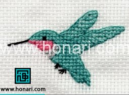 شروع دوخت را از قسمت پایین طرح، یعنی دم پرنده یا از نوک بالها آغاز کنید و به آرامی و با شمارش دقیق، مطابق نقشه پیش بروید. اگر در شمارش بخیهها دقت کنید، شکل پرنده به تدریج و بسیار واضح نمایان خواهد شد.
