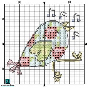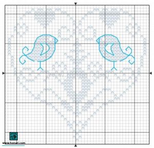 ۲ – پترن شماره دوزی طرح پرنده و دوستی