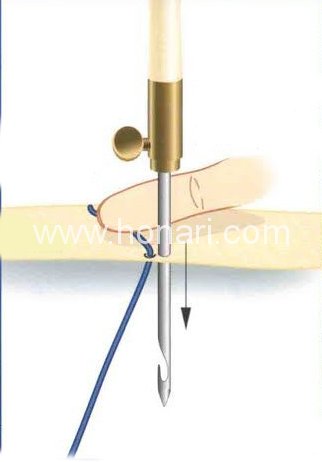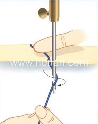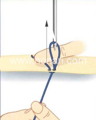 در این روش، اول باید نخ را با چندین کوک در جای خود ثابت کنید.